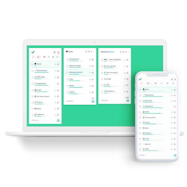 Tatask's structure naturally helps compartmentalise tasks and hides away things you're not focusing on to free up space in your brain to do the important work.