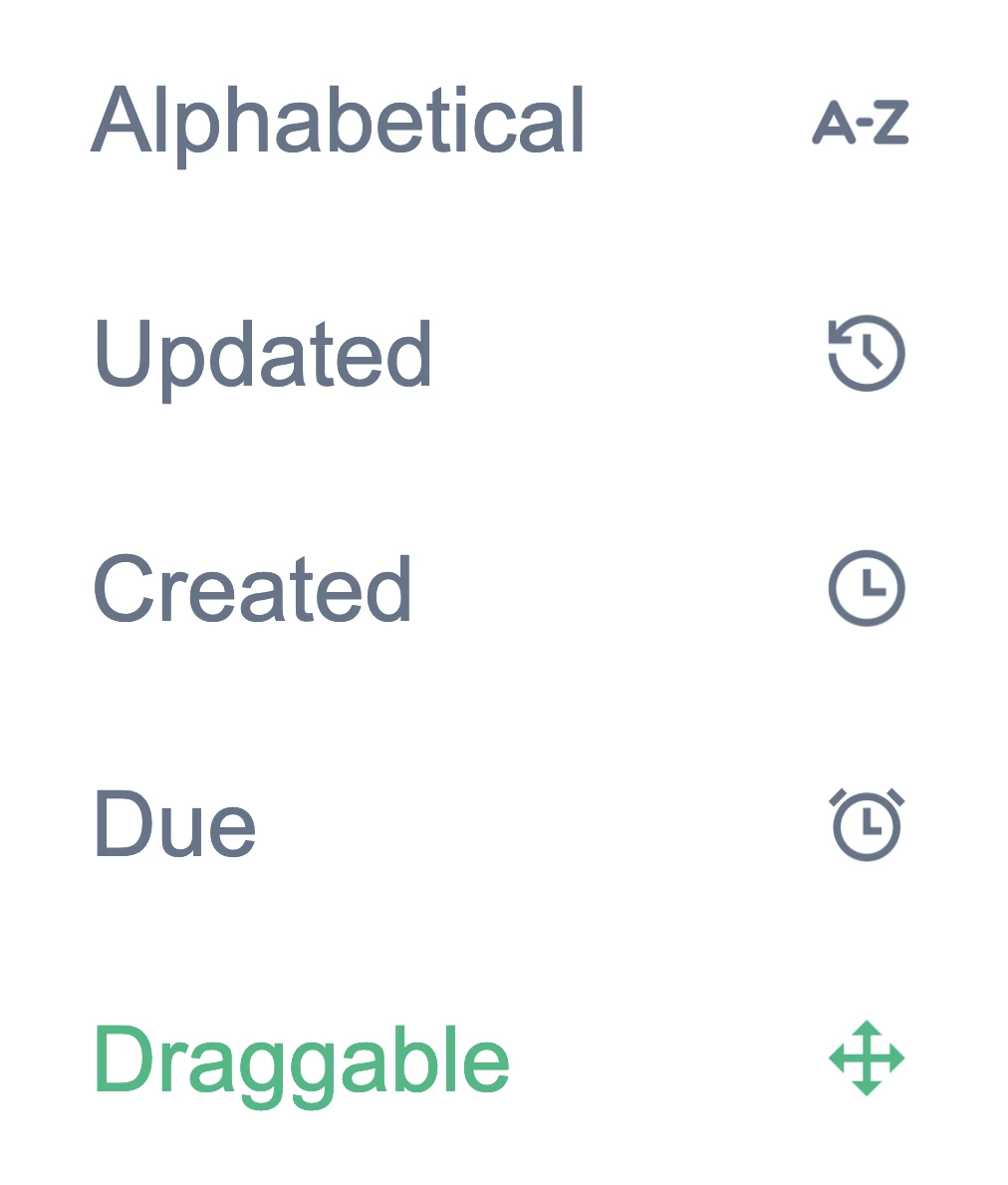 Drag and drop to order or sort by due date, creation date and more.